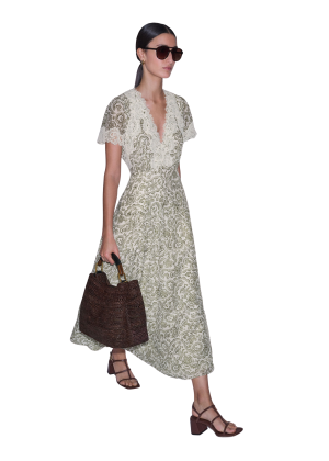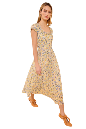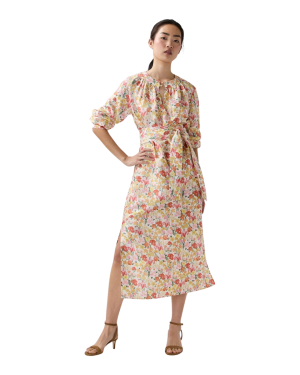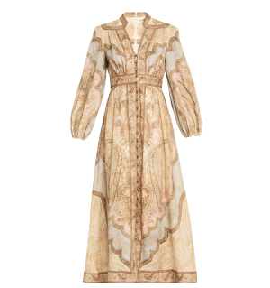 - An absolute dream of a dress, this tapestry print midi features gorgeous voluminous sleeves. I love it for a formal Passover dinner with sleek heels, and it transitions beautifully to tropical vacations with espadrilles.