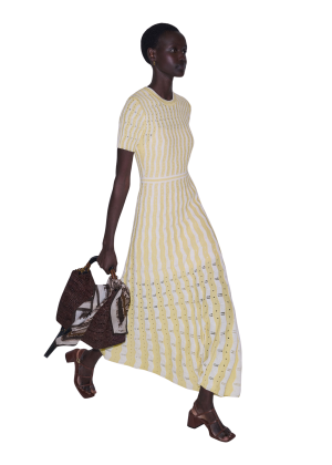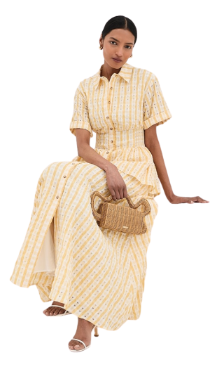 - You will reach for this striped maxi all season long. The lightweight seersucker and layered peplum are so flattering. (I suggest pairing it with a woven tote and sandals for an effortless daytime gathering!)