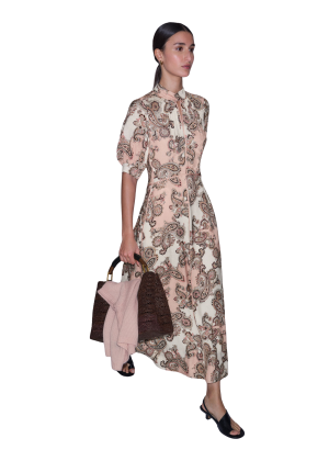 - An elevated classic like this silk shirtdress will live in your closet for years. The hand-drawn paisley print is so unique. Style it with polished sandals for hosting dinner, or leather slides for a relaxed afternoon outside.