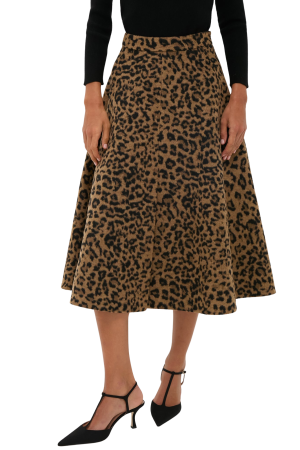 - I snapped this leopard skirt up the moment I saw it and let me tell you it's GOOD. I was worried it would flare out awkwardly but that's not the case. It has an awesome circle skirt cut that moves beautifully. Keep things casual by pairing with soft brown acccents, or go full glam pairing it with black and gold. It sits at your true waist and looked great with my black cashmere twinset which is the tiniest bit cropped. (Cardigan here, shell here.)