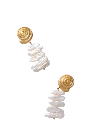 - Sculptural gold swirls and stacked freshwater pearls make these statement earrings my go-to for dressier looks.
