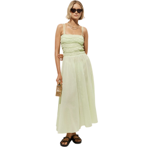 - Green striped cotton with a fit-and-flare silhouette, this Margot dress is the daytime MVP of my suitcase. It has pockets, adjustable straps, and looks darling with flat sandals and a woven tote.