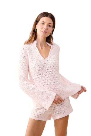 - This cozy blush pointelle set is gorgeous for relaxing weekends at home. The textured henley and matching shorts are the definition of elegant loungewear. It is ideal for sipping coffee on the porch or reading in bed.