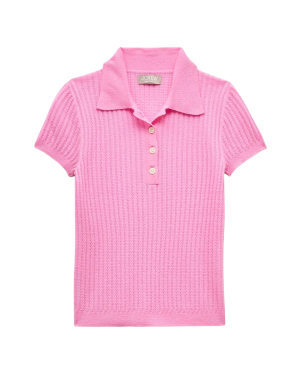 - Spring mornings call for lightweight layers, and this pink cashmere polo is just the ticket. Tuck it into high waisted trousers now, or wear with crisp white shorts on the weekend.