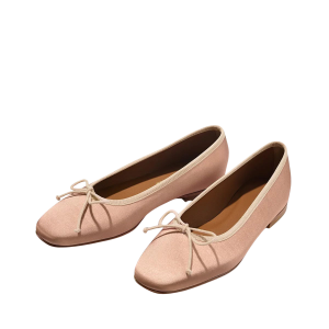 - For busy days on your feet, you will adore these pink satin flats. The subtly squared toe is such a chic modern update. They look lovely with a midi skirt for church, or cropped jeans for running errands.