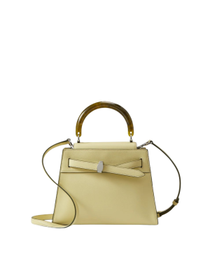 - What a stunning pistachio green top handle bag. The marbled resin detail is so unique and it's the kind of bag that instantly brightens your trusty trench coat. It comes with a crossbody strap for hands free shopping, but I'd carry it by the handle for a dressy ladies lunch.