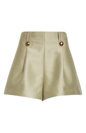 - Tailored shorts like this pistachio pleated pair are a wonderful alternative to skirts. The wool and silk blend feels so luxurious. Style them with a tucked in blouse and kitten heels for an elevated resort evening out.