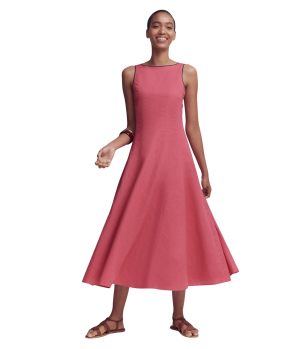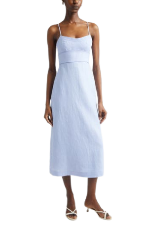 - An airy linen midi dress in soft blue is exactly what I want to wear on a warm afternoon. The smocked back ensures a perfect fit.