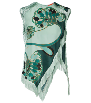 - I just ordered this eye-catching silk top, its a brilliant way to incorporate aqua into your rotation. The asymmetrical fringe feels so fun and festive. I would wear this on a glamorous getaway with white trousers and gold flats.