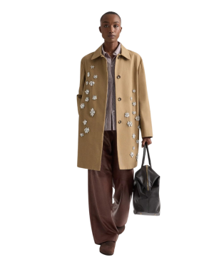- For a touch of glamour, I am obsessed with this embellished coat. The hand-placed crystals elevate a wardrobe staple to shine for evening dinner dates or a night at the theater.