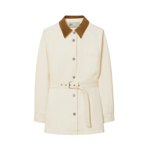 - This belted cream denim jacket is an elevated twist on fieldwear. It creates a beautifully defined waist and looks incredibly chic over jeans or trousers.