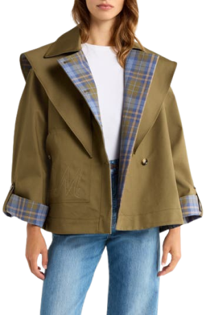 - This brilliant reversible trench gives you two looks in one. Wear the olive side for errands, then flip to the plaid for a weekend brunch.