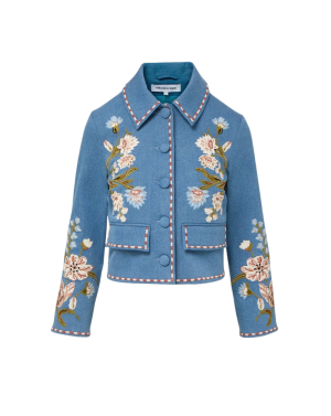 - What a stunning statement piece! This vintage-inspired jacquard jacket features the most beautiful stand collar and covered buttons. I would pair it with tailored trousers for a dressed-up lunch, or keep it casual with cropped jeans and ballet flats.