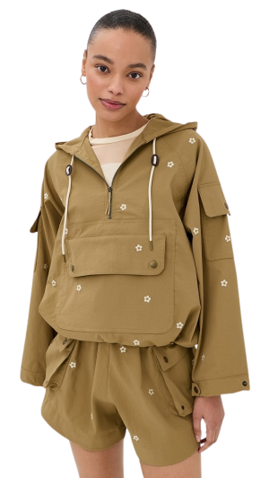 - For weekend errands or a morning walk, this sporty floral pullover is just the ticket. I love the hidden zipper and drawstring hem. It is perfectly practical for breezy days and looks adorable with your favorite workout leggings.