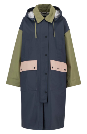 - The playful colorblocking on this hooded raincoat makes dreary weather much more fun. (The cut is generous so you can fit chunky sweaters underneath on chillier mornings.)