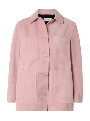 - This gorgeous pastel pink suede jacket is an absolute dream for spring. The boxy fit slips right over light knitwear for breezy patio lunches with girlfriends.