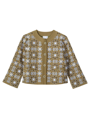 - The intricate embroidery on this military green layer brings so much lovely texture to a springtime outfit. Only a few left, but it's on major sale!