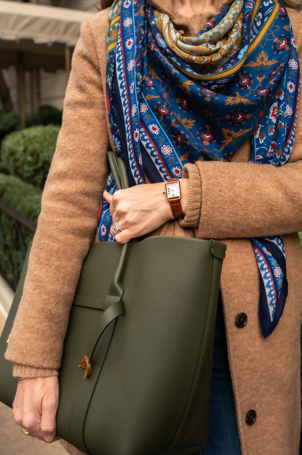 - I'm usually a small bag girl, but when the temperatures start to dip I start gravitating towards totes and bigger hobo bags as a catchall for hats, mittens, and gloves. I splurged on this insanely beautiful green tote a month ago and it is a workhorse! Lined in cashmere (!), every detail is perfection, and the pebbled leather is gorgeous and resilient. I also own this tote (seen here) that has a very similar vibe at a fraction of the price, and if you're after a green bag, I own and love this hobo bag and the green just went on sale!