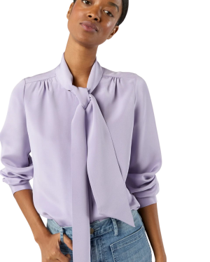 - This lavender blouse would look so chic with gray wool trousers now, and linen pants later.