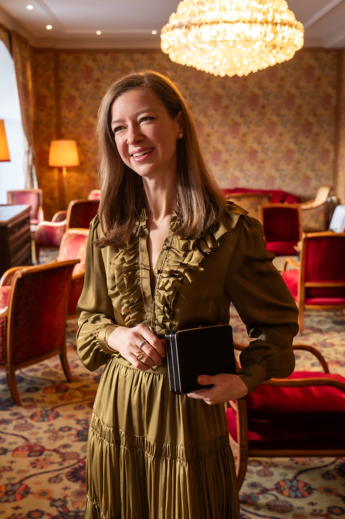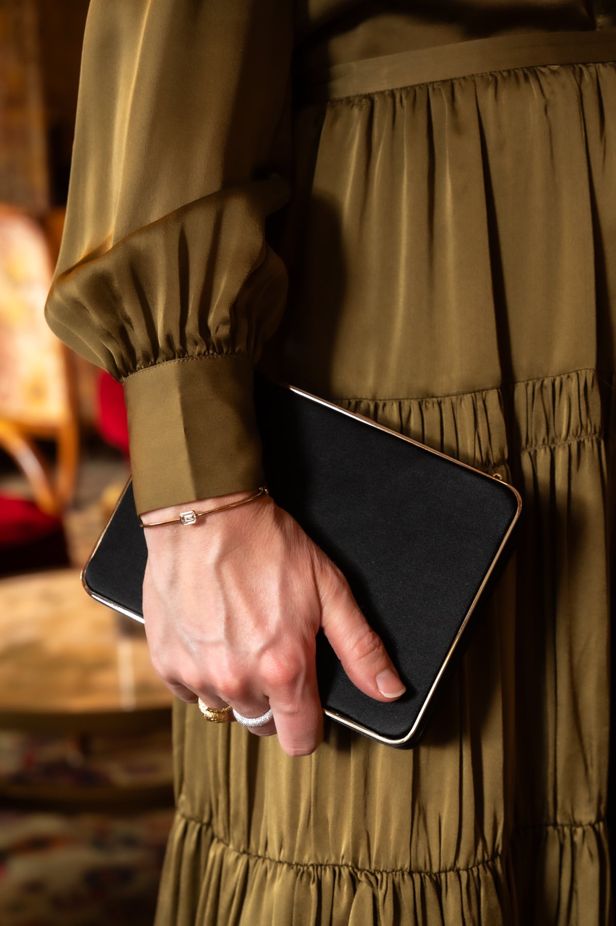 - Only a few left of this stunning silk blouse and maxi skirt I wore for a special dinner at Chesa Veglia in Saint Moritz. It's more olive than gold, and such a romantic silhouette.
