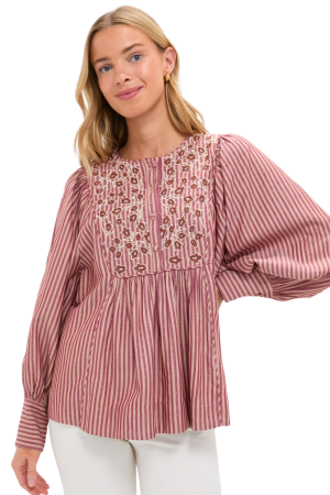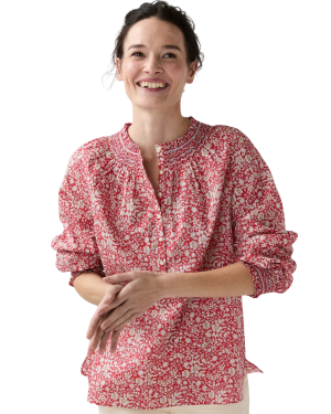 - This vibrant red smocked top features my absolute favorite light-as-air cotton. The colorful smocking around the neckline adds the prettiest texture, making it an effortless choice for running errands or casual lunches. Same goes for this striped popover top.