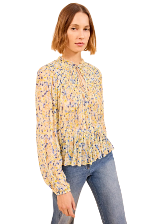 - Nothing says spring quite like a cheerful yellow print, and this beautiful silk blouse drapes flawlessly. I would style this with crisp white denim now, and flowing linen pants later in the summer.