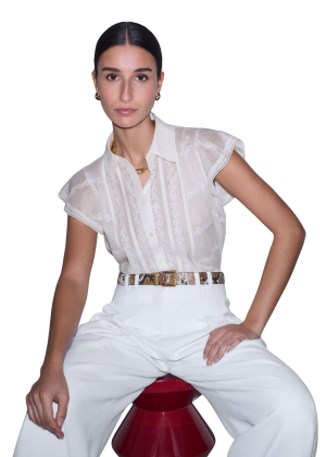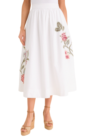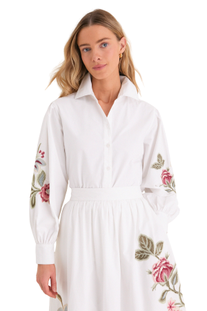 - Elevating your everyday uniform is easy with this stunning button-down. The colorful floral embroidery down the sleeves turns a simple white shirt into a true conversation piece for brunch or museum dates. Pair it with the matching skirt for an effortless spring look!