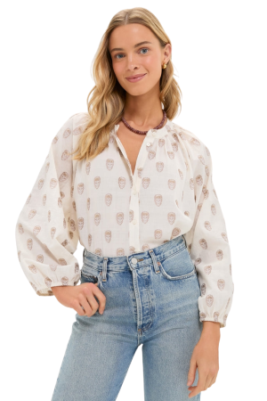 - This printed cotton blouse is the ultimate throw-on-and-go piece. The oversized fit and blouson sleeves are so comfortable. I'd pair it with wide-leg jeans for weekend errands, or white shorts when the weather warms up. (Size down for less volume.)