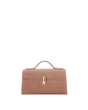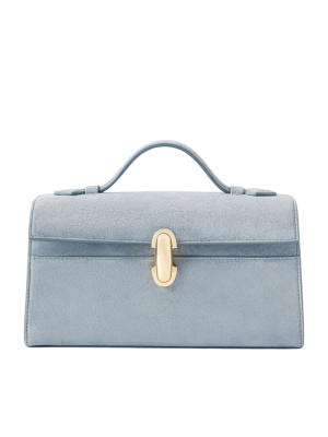 - I'm obsessed with this dusty blue suede top-handle bag from Savette. (And all the colors, really.) The structured silhouette and gold hardware feel so elevated. A perfect smaller bag that goes with everything.