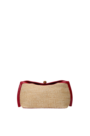 - Cherry trim gives this raffia clutch a playful pop of color that livens up a neutral outfit instantly. Perfect for spring parties, outdoor concerts, and date nights.