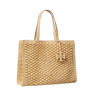 - This popcorn stitch raffia tote is the perfect everyday spring bag. Roomy enough for farmers market runs and polished enough for lunch with friends in a linen dress. I'd remove the logo tag and replace with a silk twilly!
