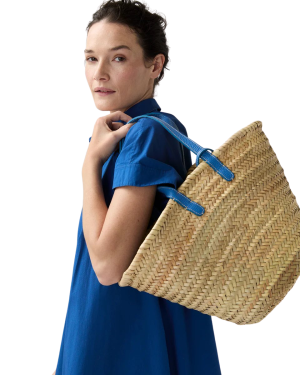 - Ann Mashburn always nails the classics, and this straw tote is no exception. Big enough for beach days, refined enough for Saturday shopping with a button-down and loafers, I love the happy hue of the leather handle.