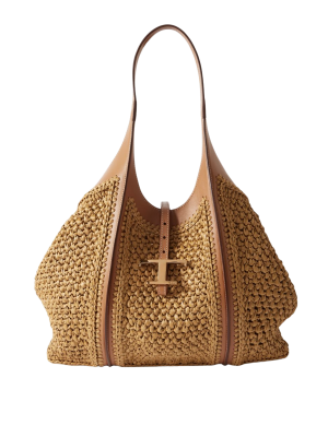 - If you want a roomy raffia bag that goes with everything, this shoulder tote in natural beige is perfection. I love how the weave elevates easy summer pieces. You can capture the same feel with this leather and raffia tote at a much more attractive price.