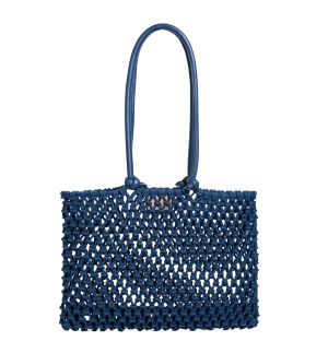 - That gorgeous navy hue on this macramé rope tote is so eye-catching. Throw it over your shoulder with white jeans and a striped top for an effortlessly chic weekend look. (I got the ivory version last summer and loved it, but a pair of jeans rubbed off on the cording, so I would recommend getting this bag in a darker color!)
