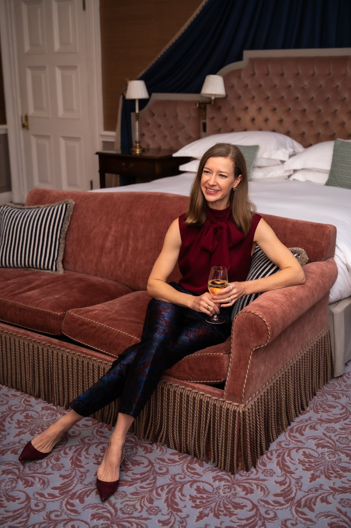- The silk blouse I'm wearing above is a gorgeous staple that works on it's own for parties or under blazers at the office. It also comes in a bright poppy red.