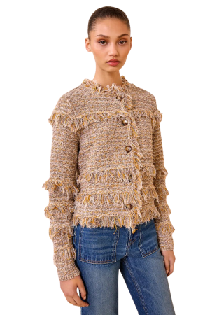 - This fringe-y cardigan is a fun way to dress up jeans for date night, or wear with tailored trousers to the office.