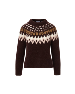 - This fair isle sweater is perfection. I love the warm burgundy and tan mix, which flatters almost every complexion, and frames your face nicely. Great with wool trousers, jeans, a long skirt and boots - you name it!