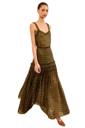 - This olive lace skirt is absolutely stunning. The rich color works with a cozy knit and boots now, then swap for white accessories and the matching camisole on sunny days.