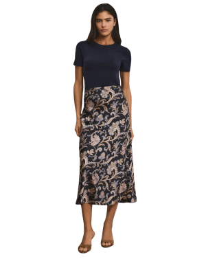 - Paisley in silk is always a winning combination, and this midi skirt proves it. Style with a cashmere tee and heels for an effortlessly polished desk-to-dinner look.