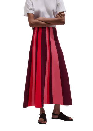 - Chevron stripes in shades of pink and berry make this Missoni-esque knit midi skirt feel playful and polished at once. Perfect with a white blouse for brunch or the matching top for a coordinated set.