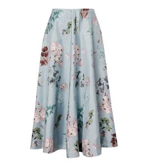 - Made in Italy from pure silk, this dusty blue floral midi skirt feels like a work of art. Wear it with a fitted knit and heels for a dinner party or Easter dinner.